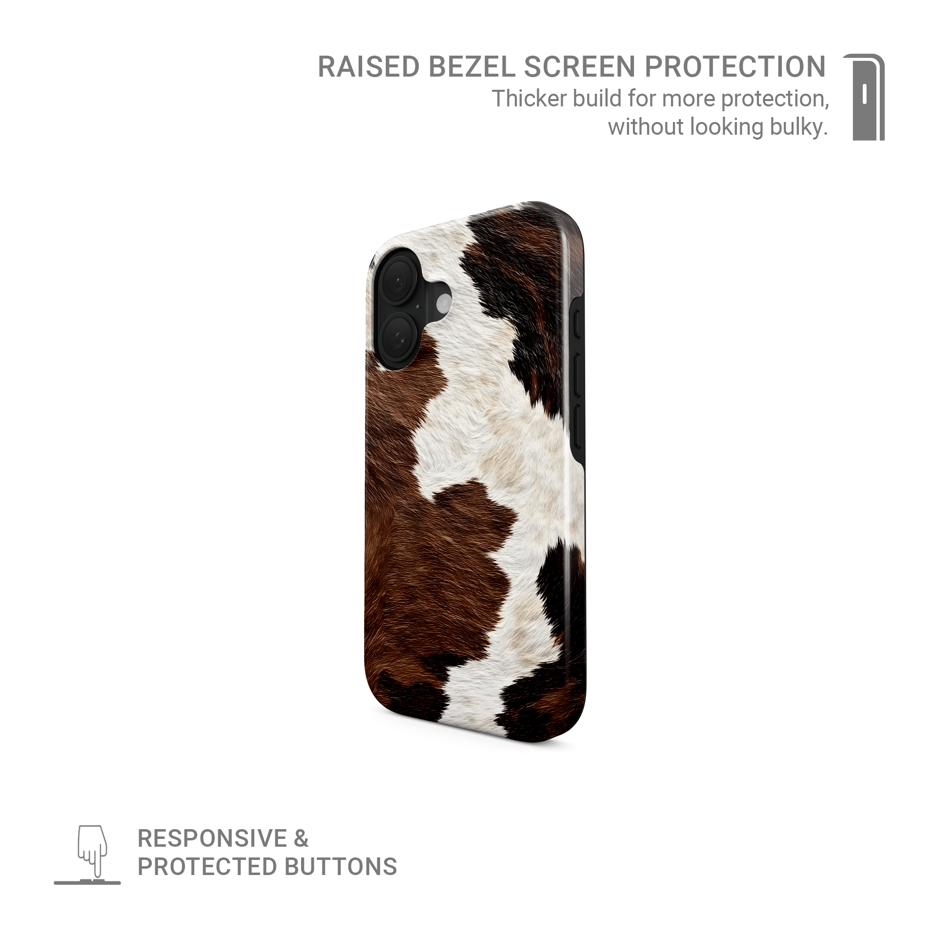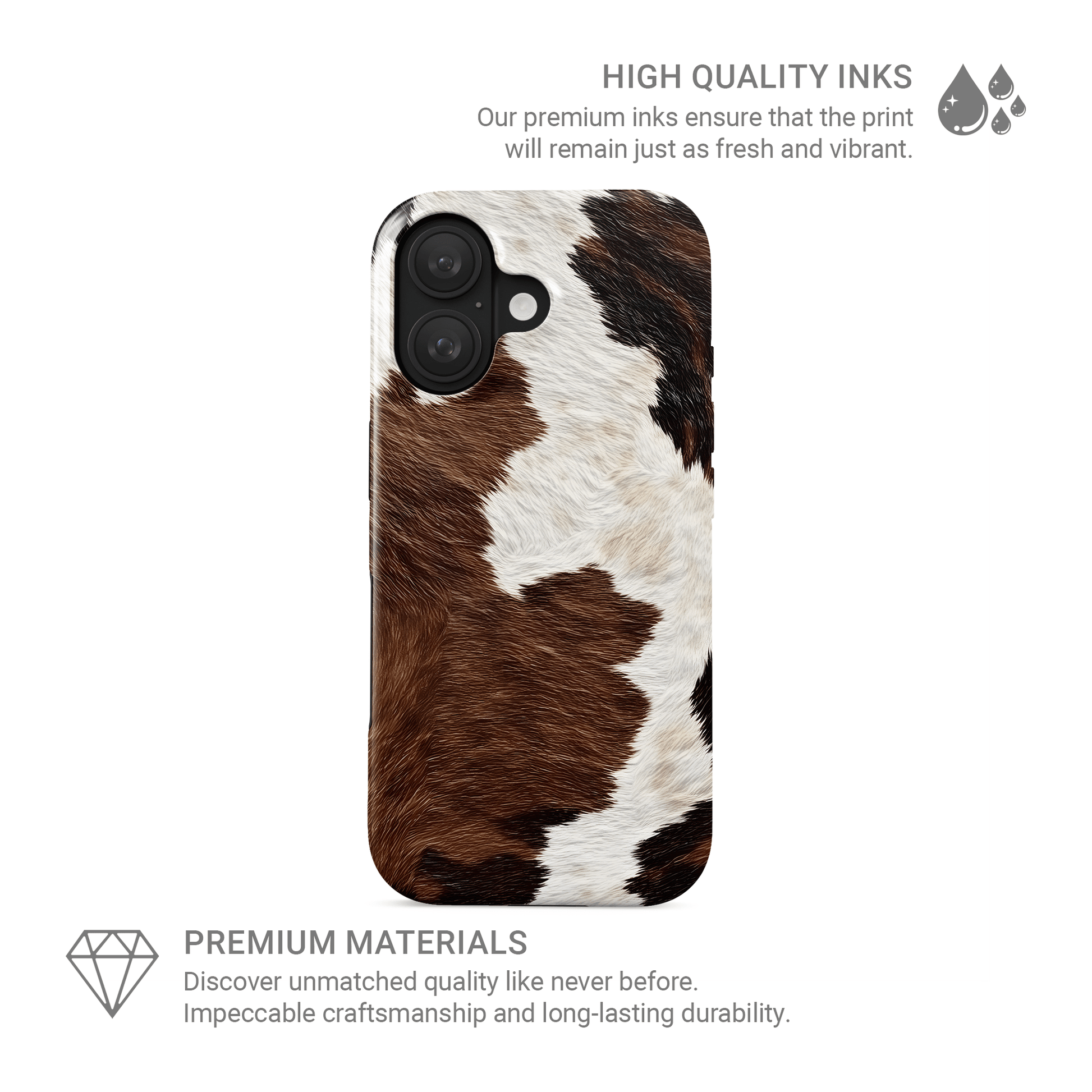 This cowhide print phone case makes the perfect gift for anyone who loves earthy tones, farm vibes, or that rugged ranch aesthetic. It’s equally at home in a fashion-forward tote or a utility belt — ideal for cow lovers, country girls, and cottagecore queens alike.