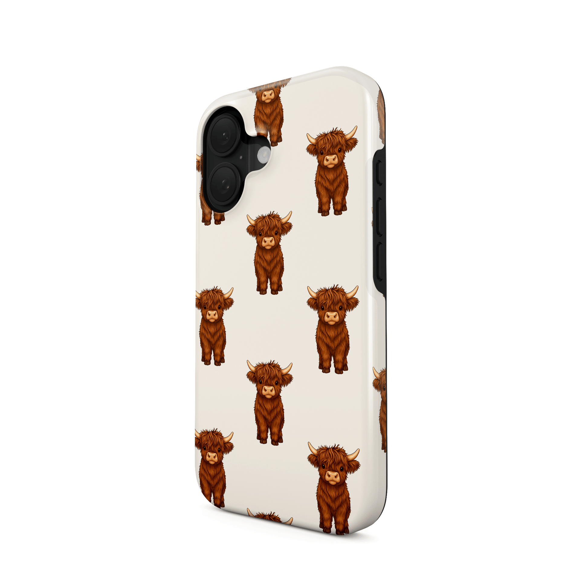 The Moo Parade design is a heart-stealer. Each Highland cow is lovingly illustrated, standing tall on a soft cream background that makes the entire print feel fresh, warm, and full of character. Whether you’re gifting it to a cow-obsessed friend or keeping it all to yourself, this cute Highland cow phone case is guaranteed to turn heads (and hooves).