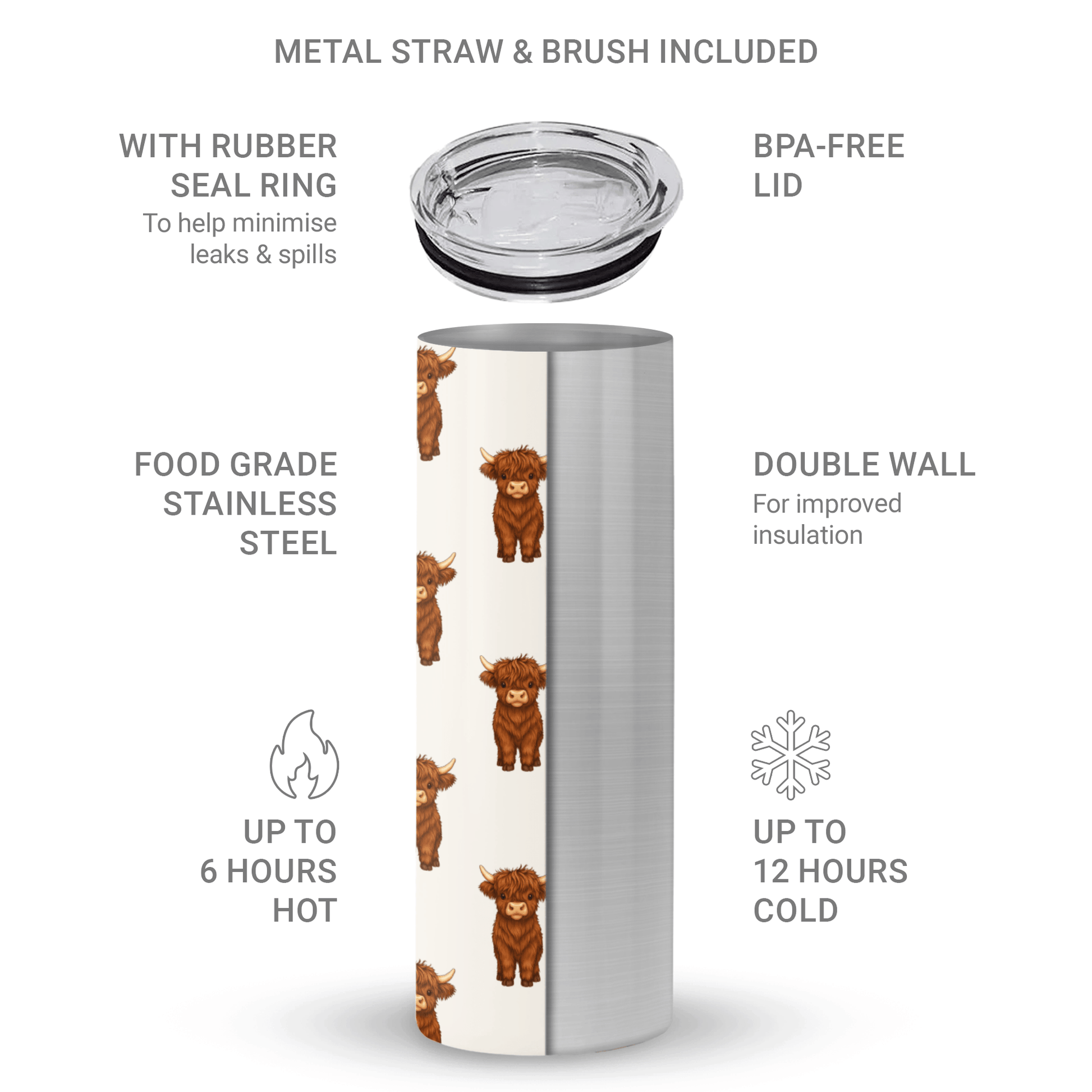 The best part? It’s not just about function—it’s about joy. The Moo Parade design is irresistibly charming, featuring rows of adorable Highland calves with their shaggy coats and sweet faces. Every sip is met with a smile, making this tumbler a delightful way to brighten up your daily routine. It’s the perfect gift for animal lovers or anyone who appreciates a dash of countryside character in their everyday essentials.