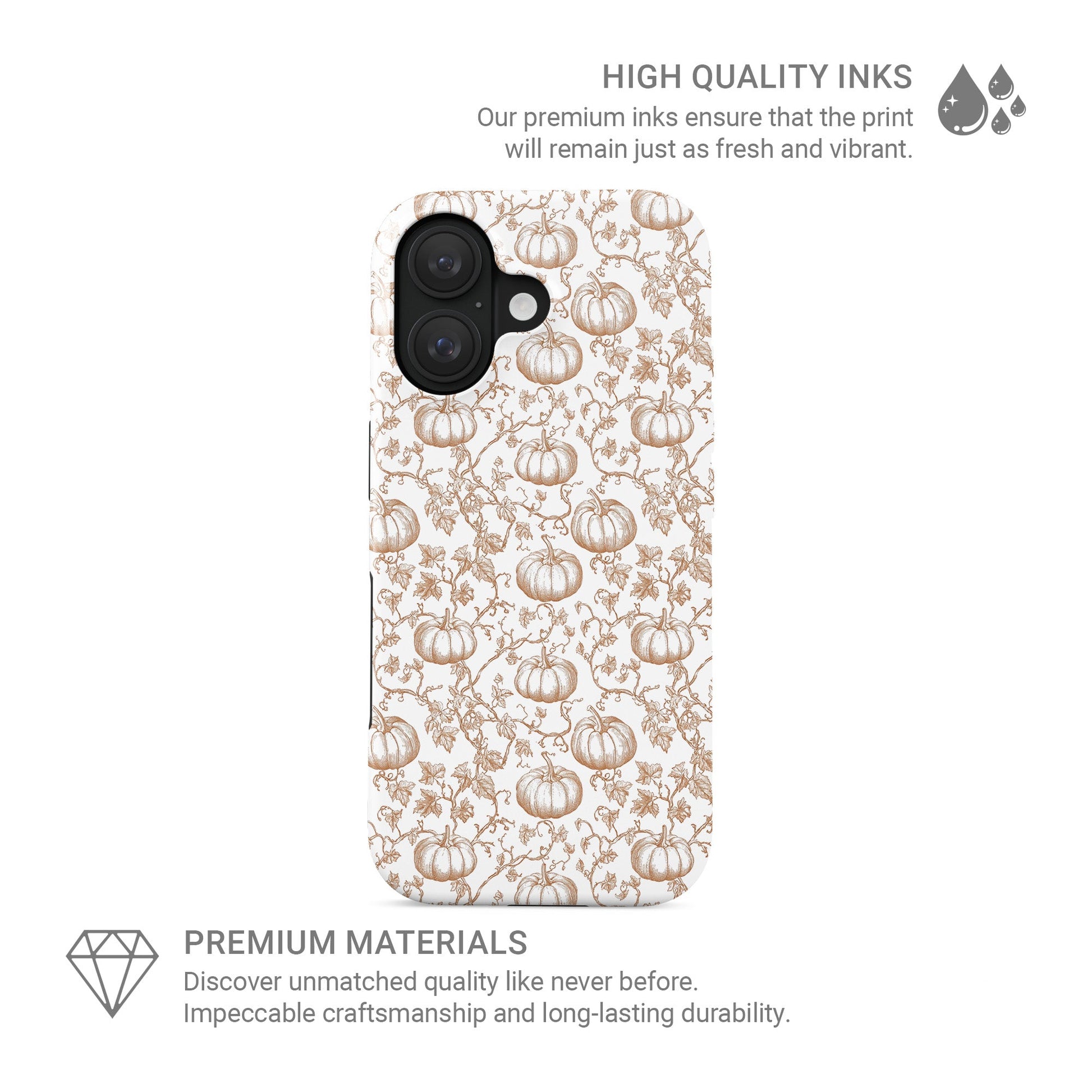 What truly makes this design stand out is the Vine & Dandy pattern. Delicately sketched pumpkins and winding vines sprawl across a soft neutral background, bringing rustic elegance to your tech. From afar, it looks understated and versatile; up close, the intricate details reveal a whimsical harvest-inspired story. It’s subtle enough for everyday use yet festive enough to shine during autumn.